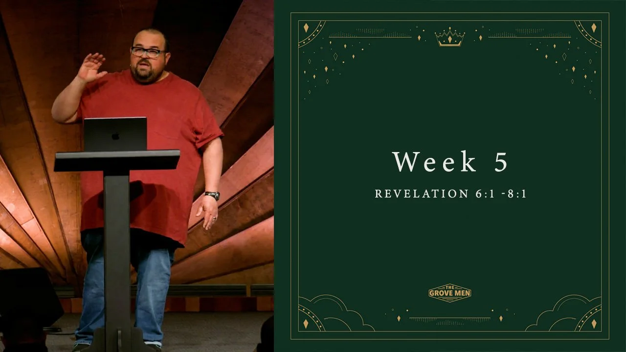 Revelation 6:1 - 8:1 // Men's Bible Study Watch the Video Listen on Spotify Listen on Apple RevelationMandy GarrettFebruary 19, 2026The Grove Community Church Facebook0 Twitter LinkedIn0 Reddit Tumblr Pinterest0 0 Likes
